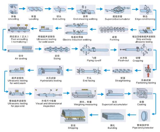 Надлъжно заварените тръби могат да бъдат разделени на ERW и LSAW според процеса на заваряване.